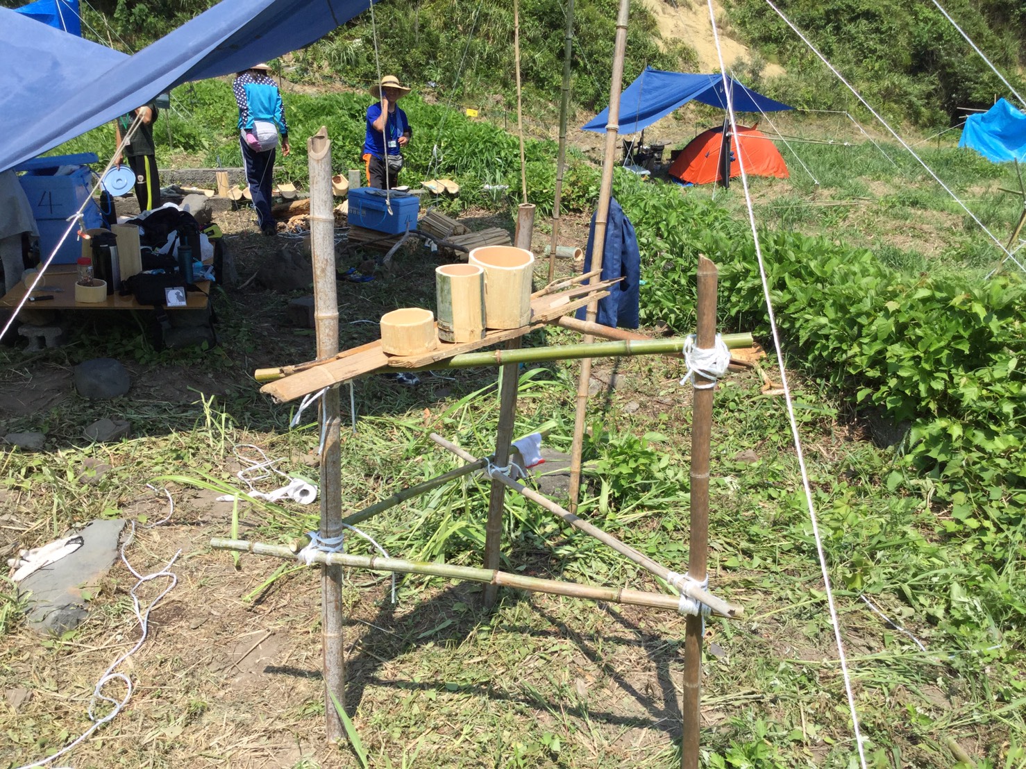 食事も終わり、テントサイトに食器棚やアプローチが作られています。テントサイトコンテストは8月4日です。