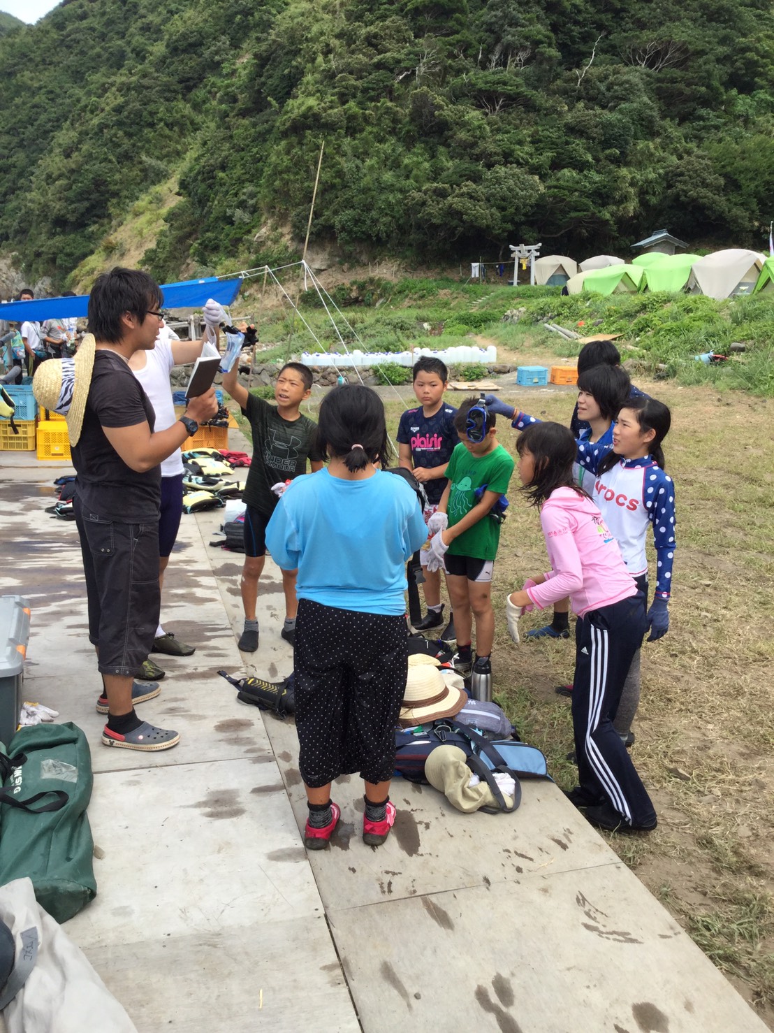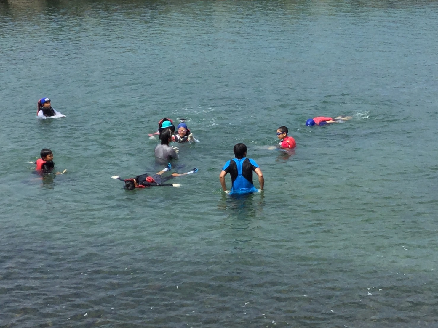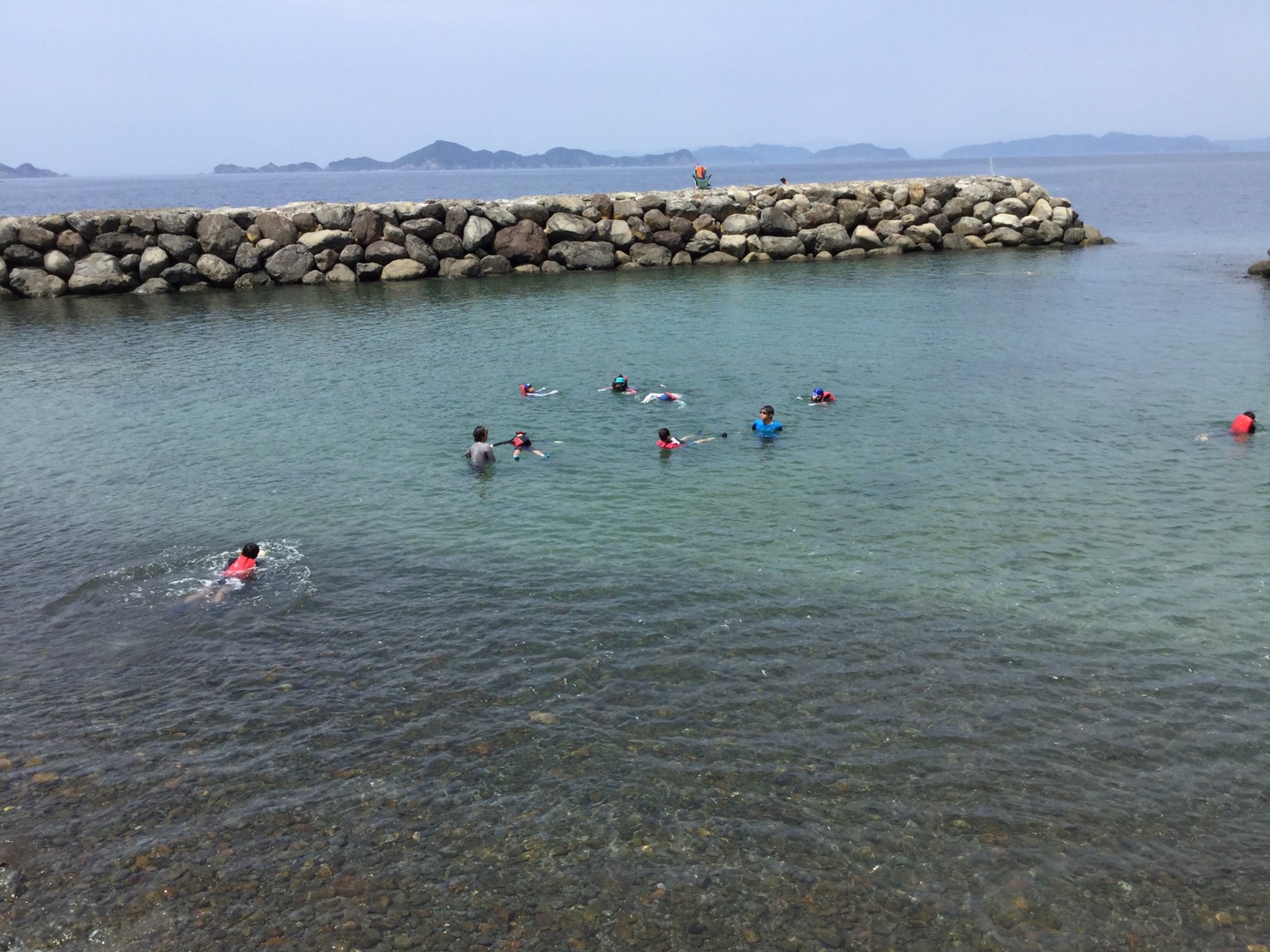 2日目の午後は、海水浴です。注意事項を聞いたあと、一班ずつ海に入りました。海の水は冷たく、気持ちよかったようです。