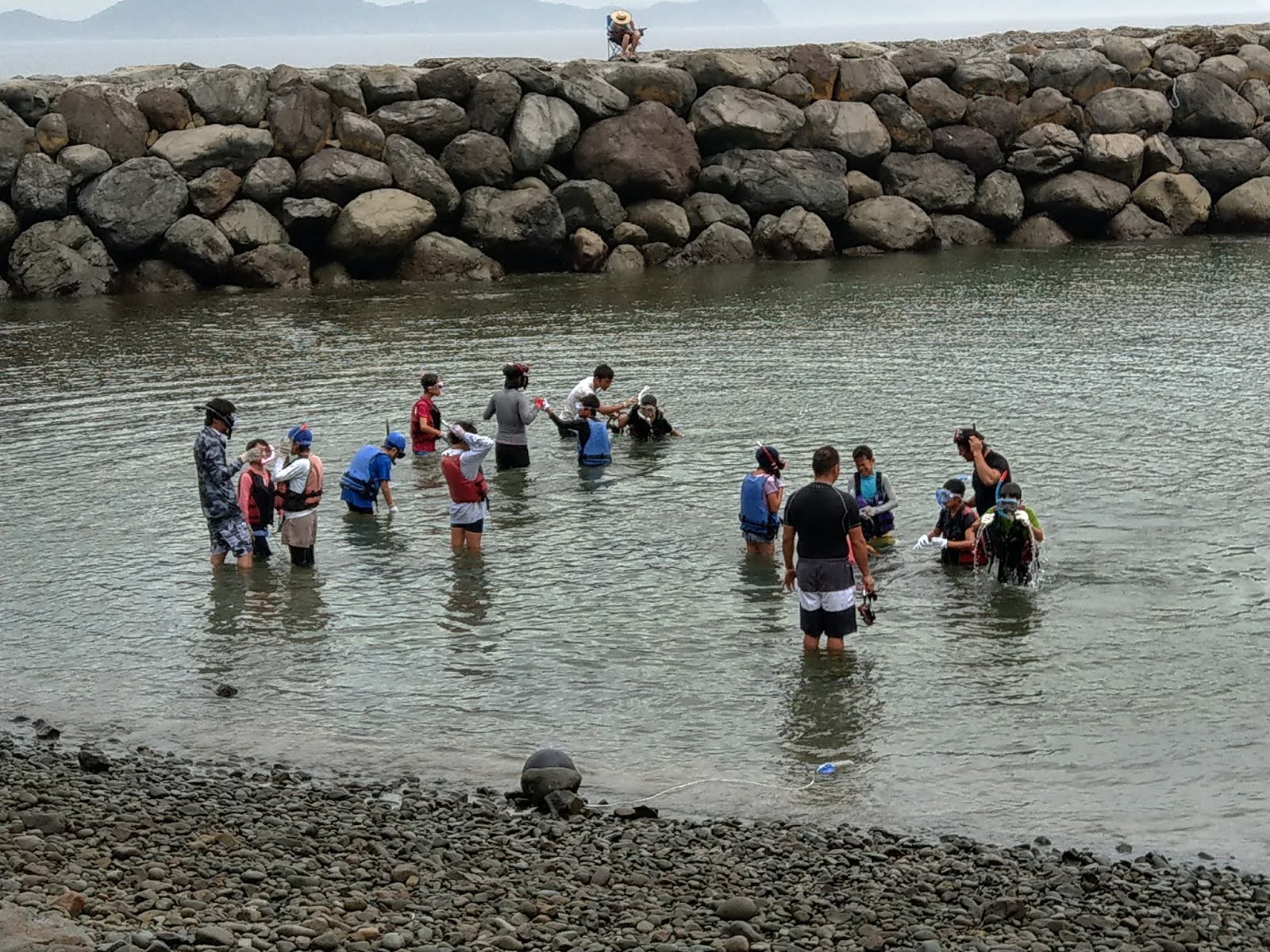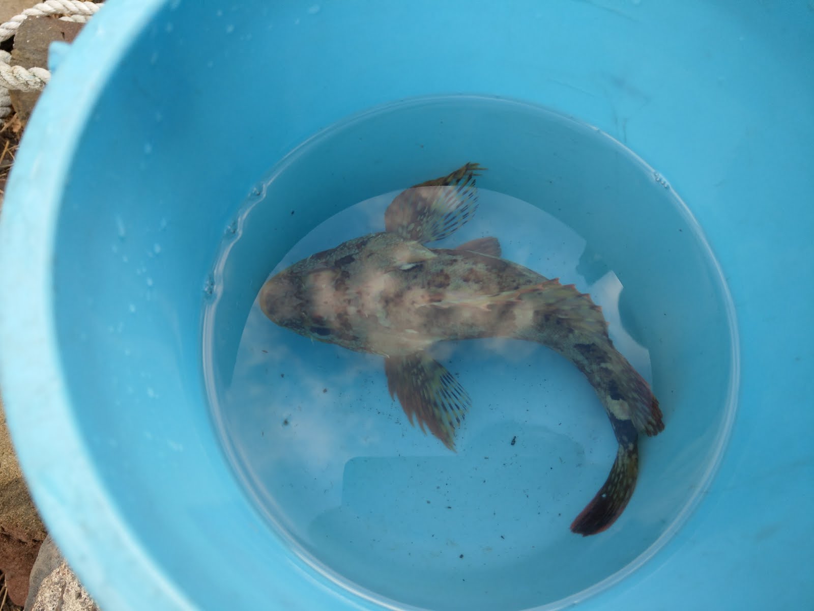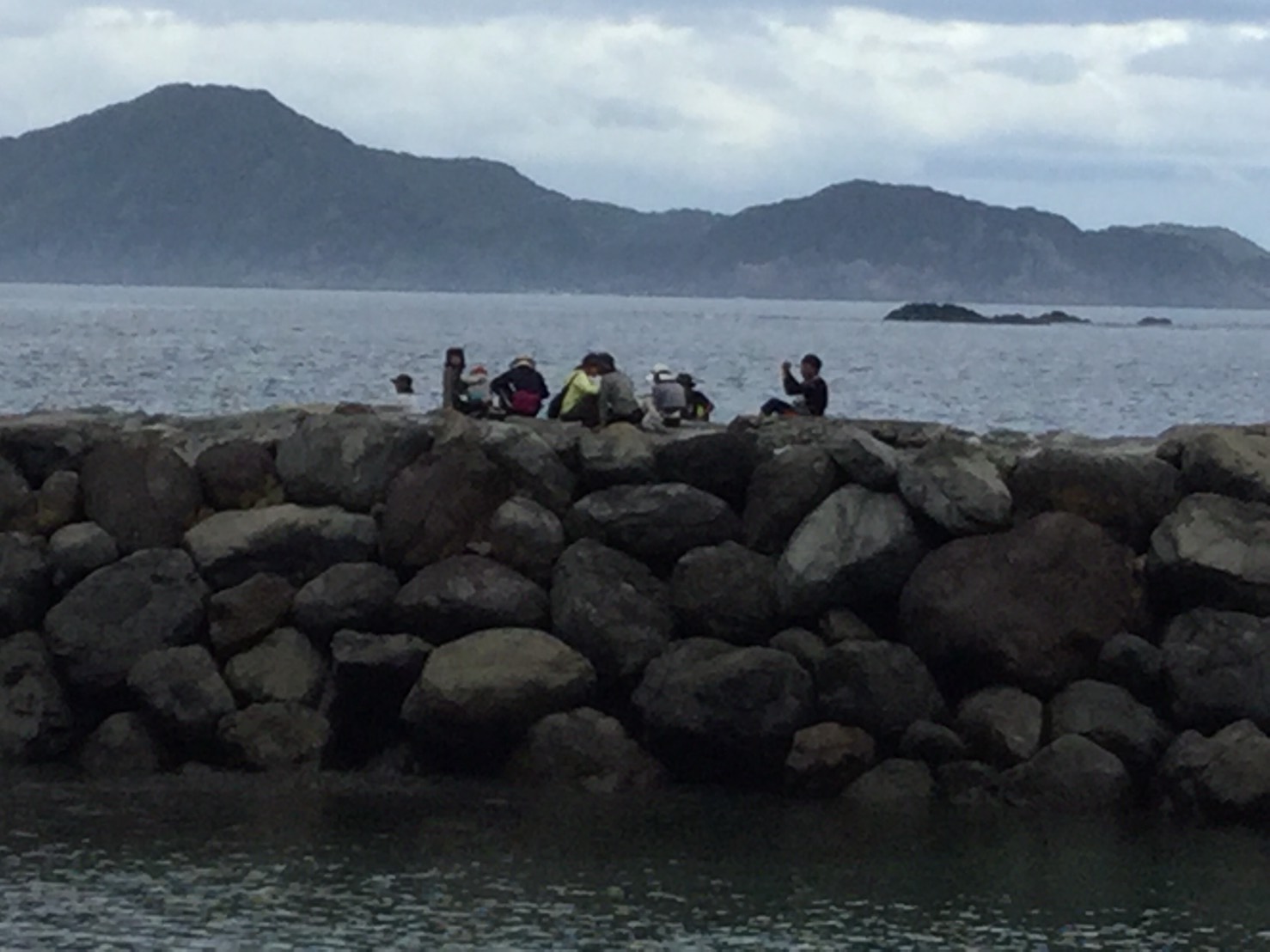 午後は、釣りとシュノーケリングに分かれて、活動しました。釣りでは、貝の身をエサにして、カサゴなどを釣り上げていました。