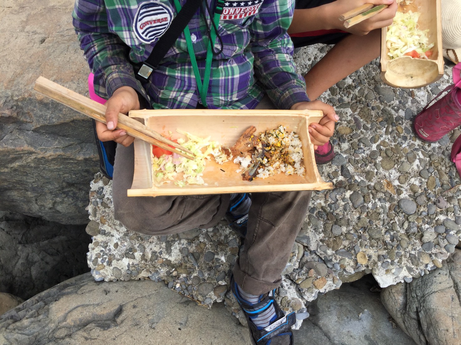今日の昼食は、海辺のオープンテラス気分。食事を持っての移動は大変でしたが、美味しくいただきました。